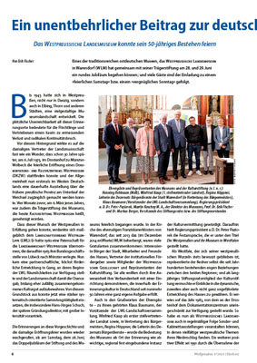 Die Erinnerungen an diese Vorgeschichte und die damalige Eröffnungsfeier wurden wieder wachgerufen, als am Samstag, dem 28. Juni, das Doppeljubiläum der Stiftung und des Museums feierlich begangen wurde. In der Kirche des ehemaligen Franziskanerklosters von Warendorf, das seit 2013 das (im Dezember 2014 eröffnete) WLM beherbergt, waren viele Gratulanten zusammenkommen: interessierte Bürger der Stadt, Mitarbeiter und Freunde des Hauses, Vertreter der institutionellen Fördergeber sowie Mitglieder der Westpreußischen Gesellschaft und Repräsentanten der Kulturstiftung. Sie alle wollten durch ihre Anwesenheit ihre Verbundenheit mit einer Einrichtung demonstrieren, die innerhalb der Erinnerungskultur in Deutschland seit nunmehr 50 Jahren eine ganz eigene Aufgabe erfüllt.