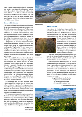 Wir verlassen Dörbeck und tauchen in den Mischwald ein – gutes Schuhwerk ist gefragt. Der Weg führt uns nun abwärts und erinnert tatsächlich an einen Wanderweg in der Schweiz – daher eben »Dörbecker Schweiz« –, durch tiefe Täler, die von den zahlreichen Bächen der Elbinger Höhe gegraben wurden. Nach kurzer Zeit überqueren wir einen Bach und sehen auf der rechten Seite einen kleinen Berg (Langer Grenzberg) mit einer Höhe von 154 m. Früher führte hier – heute nicht mehr begehbar – der »Kirchen­steig« entlang, den die Bewohner von Lenzen (Łęcze) über lange Zeit für ihren Kirchgang nach Dörbeck nutzen mussten, bis sie 1746 ihr eigenes Gotteshaus erhielten.